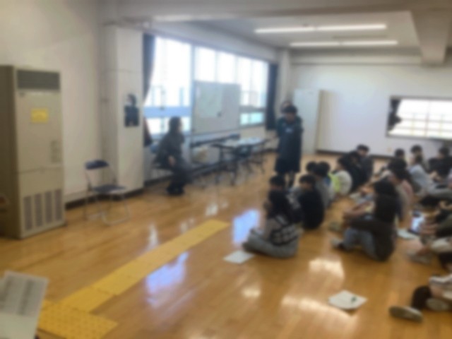 ボランティアティーチャーの方々をお招きし、「目が不自由なこと」に関するお話から、共用品見学、点字体験などさまざまな活動を行うことができました。特に、点字体験では、自分の名前だけでなく、色々な文章の点字を打ち、ボランティアティーチャーの方に読んでもらいました。声かけガイドヘルプでは、困っている方を見かけたときの声かけや、お手伝いの仕方について学ぶことができました。