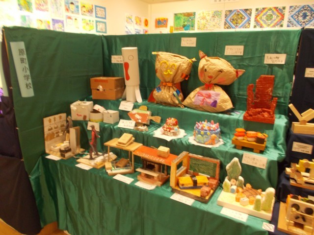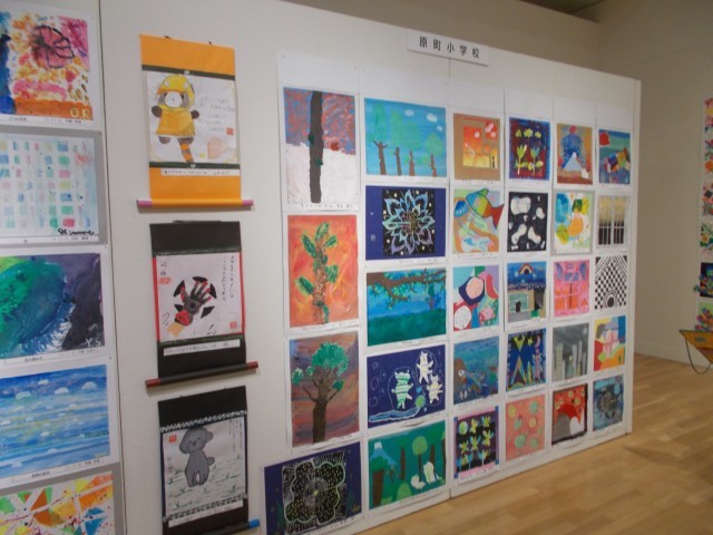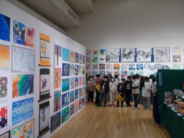 区内の小学生や中学生の図工や書写の作品が展示されていて、興味深く鑑賞していました。