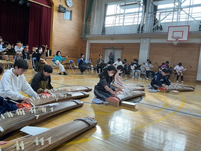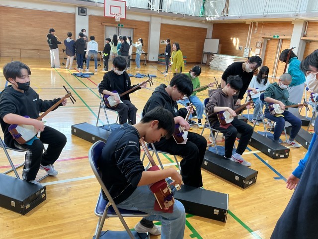 最後にはみんなで合奏をしました。真剣な表情で説明を聞き、夢中になって楽器に触れ、2時間があっという間だったようです。日本の伝統文化を身近に感じる、貴重な体験となりました。
