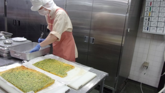 今日のカレー南蛮うどんは、カレーの辛さを2段階(低学年、高学年)にしました。高学年は、スパイシーが感じられる汁です。大学芋は、紅はるかで作りました。ほくほく感としっとり感が感じられる大学芋です。」