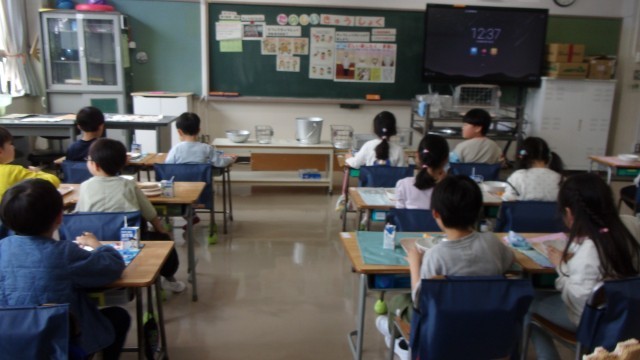 今日から1年生の給食が始まりました。給食を楽しみしていたようです。「おいしかった。」という感想が聞けてほっとしました。