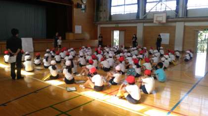 今日は、3年生と4年生が体力テストをします。