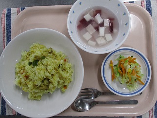 カレー粉を入れて炊いたごはんにカレー味の具を混ぜたメキシカンライスは、子どもたちからも大好評でした!