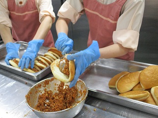↑ビーンズミートサンドは、一つ一つ具を挟みます。
