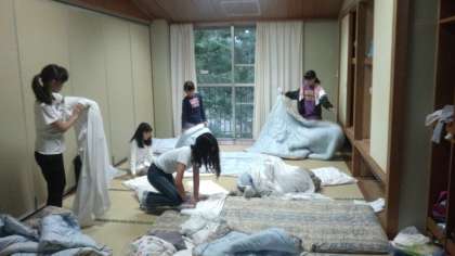 おはようございます。3日目の朝です。寝具を片付けています。