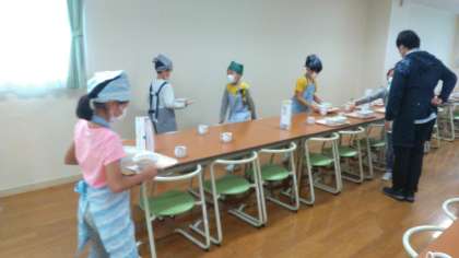 食事係が朝食の準備をしています。