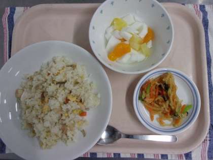 ごま油の香りが、食欲をそそる五目チャーハンです。
