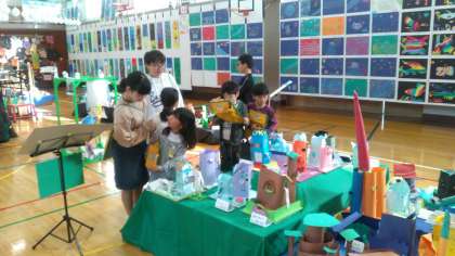 今日から始まりました。1年生と6年生が一緒に2〜3人のグループになって鑑賞しています。