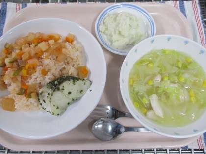 色々な国の料理が混ざり合い、今日の給食はとても賑やかなイメージになりました。