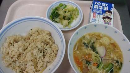 今日は、生姜をたっぷり使ったしぐれご飯と地産地消の野菜を使った献立でした。