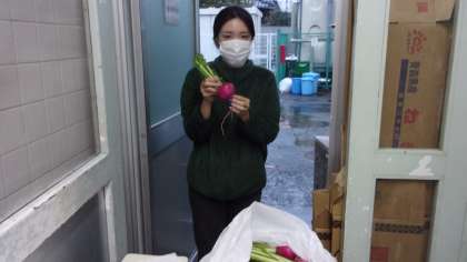 「赤カブがおいしい。」「生姜が効いている。」等給食の時間に感想を聞けました。
