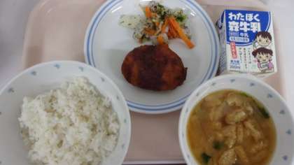 「ゼリーフライ」は埼玉県行田市の郷土料理です。11月の献立表を見て「ゼリーフライって、ゼリーが入っているんですか?」と献立名がとても気になっていたようです。