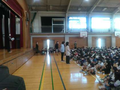 今年度初めて体育館に集まりました。みんな5分前には集合できました。