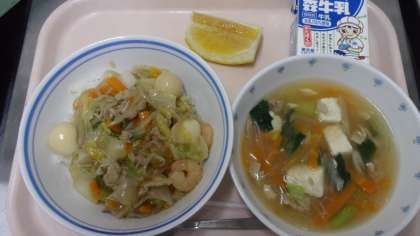 献立 中華丼 豆腐入りはるさめスープ 宇和ゴールド 牛乳
