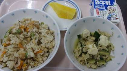 献立 ジューシーごはん ゴーヤチャンプルー 生パイナップル 牛乳