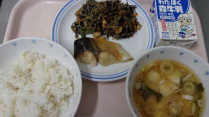 献立 ごはん みそ汁 鯖の塩焼き 切干大根とひじきの煮物 牛乳