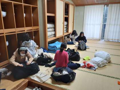 帰る用意をしています。