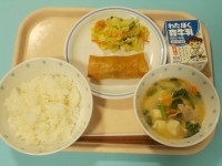 【今日の献立】ご飯春巻きにんにくサラダ豆乳入り野菜みそ汁牛乳今日はリクエスト給食...