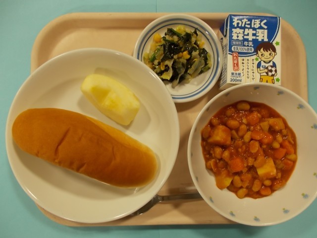 今日は9月に来た栄養士の実習生が考えてくれた「食物繊維たっぷり給食」です。