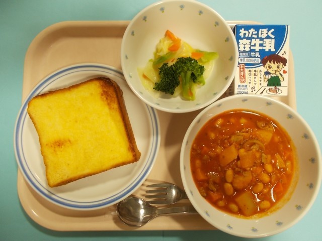 今日のフレンチトーストは、豆乳、卵、砂糖を合わせてパンを浸け、バターをかけてオーブンで焼きました。主食として組み合わせたので、甘さは控えめにしてあります。