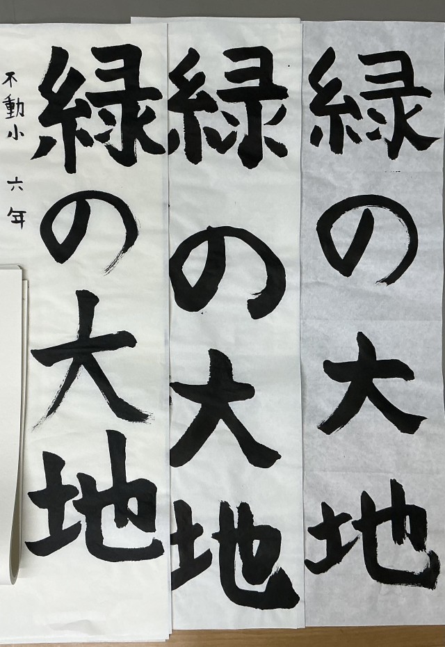 年明けに行われる席書会に向けて、書き初めの練習を行いました。小学校生活最後の書き初めとなる6年生。「展覧会に選ばれたい!」と意気込む子供たちもいました。今年は「緑の大地」という言葉を書き初めで書きます。総合でSDGsについて学ぶ子供たちの中には、言葉の意味について真剣に考えながら書く子もいました。年が明けてまたみんな揃って席書会が開かれることを願っています。