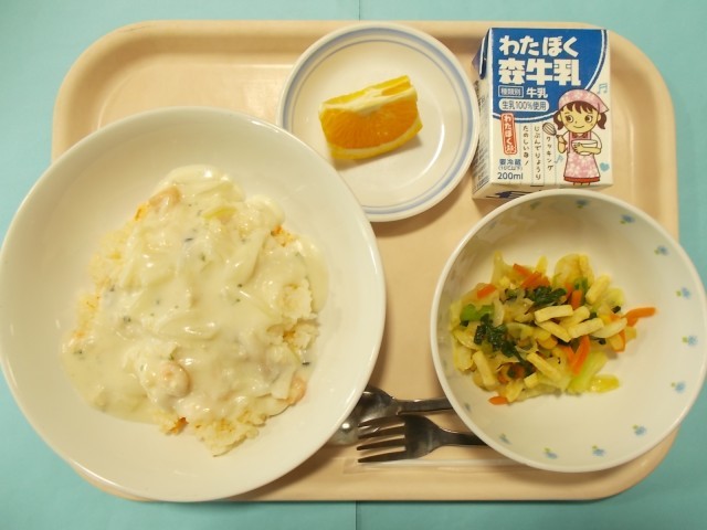 今日のデザート「スイートスプリング」は温州みかんとはっさくを掛け合わせた果物です。まろやかな甘さ、さわやかな香りを味わってみてください。