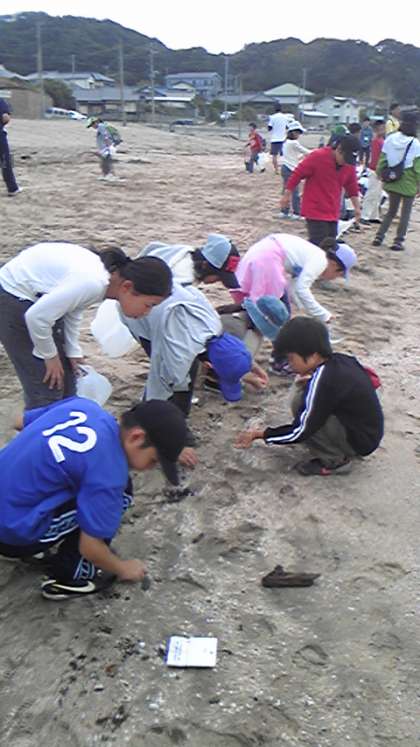 海の博物館の近くよりも拾えるということで、予定を変更して先に貝殻拾いをしています。きれいな貝は見つかるかな