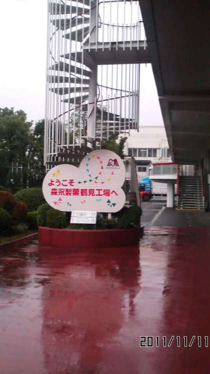 森永製菓鶴見工場を見学しています。東京ドームの2.5倍の広さがあるそうです。ココアをいただきながら、説明を聞いて、いよいよ工場内へ突撃です!甘い香りが漂っています。ここから先、撮影禁止場所です。。
