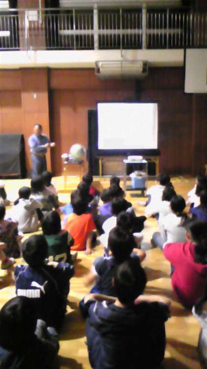 夕食の後は、延期していた天体観測です。講師の先生をお招きして、少し専門的なお話をしていただきました。