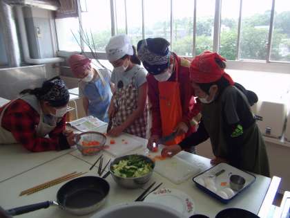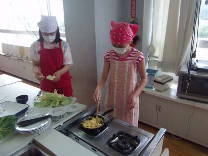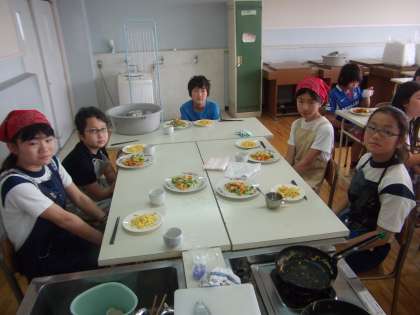 6年2組は、家庭科の調理実習で「いり卵と野菜炒め」を作りました。グループで協力しながら作業しました。味はどうだったでしょうか?少し炒めすぎて、焦げていたり、野菜のしゃきしゃき感がなかったりしたようです。ぜひ、家でやらせてみてください。