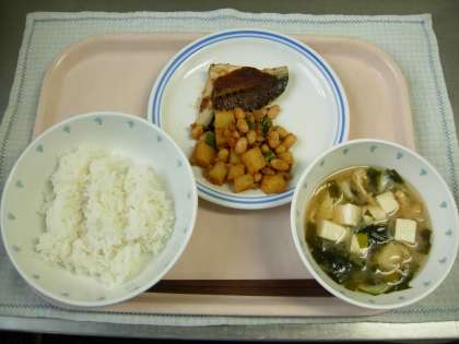 今日の給食は「ごはん・鯖の梅味噌焼き・