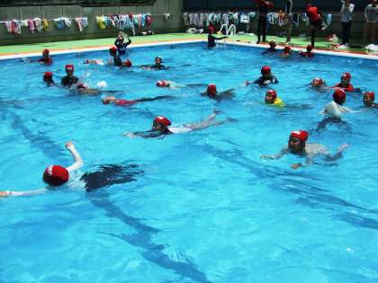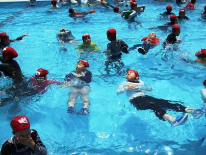 長袖、長ズボンを着たまま水に入ると体が重くなり、動くのもやっとです。