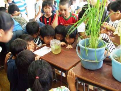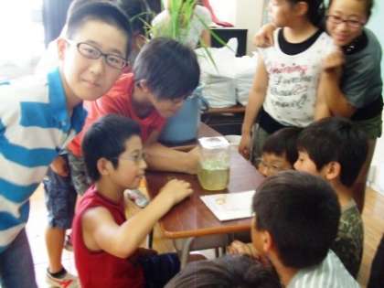 高柳さんの説明に聞き入っていた子どもたちは、飼ってみたくなったようで、カブトエビを各クラスにいただけることになりました。
