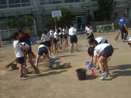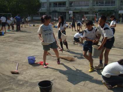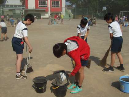 今日の6時間目は、5,6年生が運動会のために校庭の土を掃いて、校庭の整備をしました。