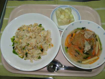 春雨スープ・りんご羊羹」でした。卵とレタス