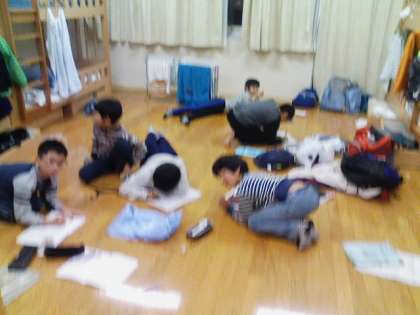 初日の予定を無事に終了し就寝の準備をしています。班長会では1日を振り返って明日に向けての確認をしました。今現在、大きく体調を崩している子はいません。では間もなく就寝です。お休みなさい。