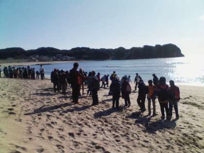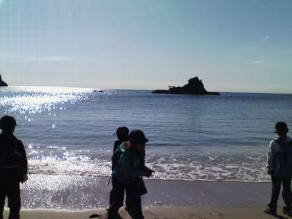 海岸で午後のアクセサリーの材料にする貝拾いをしました。