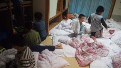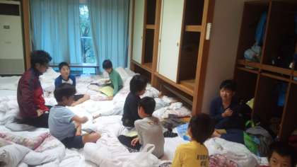 起床です。検温をして自分の体調をカードに記入しました。いよいよ最終日です。今日も、元気に活動します。