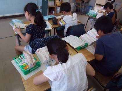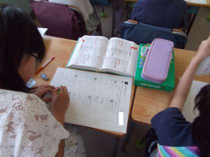 4年生の国語では「漢字辞典の使い方」を学習しています。部首引き、音訓引き、総画引きなど、字によって適した引き方を考えて調べました。これから、わからない漢字に出会ったときには、積極的に漢字辞典を使って調べてほしいと思います。