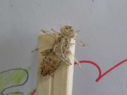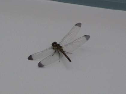 1,2年生はプールから救い上げたヤゴを教室で育て続けています。だんだんと暑くなってきたせいか、ヤゴが羽化してトンボになり始めました。子どもたちが登校する時間には羽化が終わっていますが、教室に止まっているトンボを見て「トンボになったー!」と歓喜の声を上げています。しばらく教室に止まっていましたが、掃除の時間に飛び立っていきました。「ばいばーい。」「元気でねー。」とお見送りする子どもたちでした。