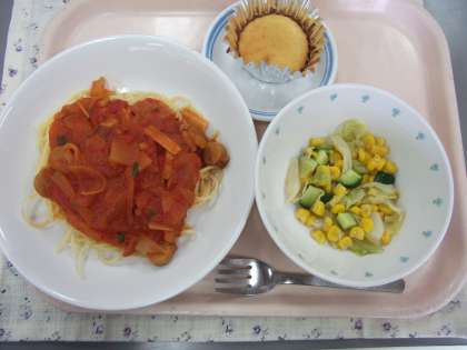 今日の給食は「スパゲティー