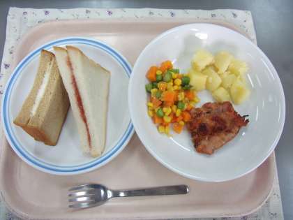 今日の給食は「二食サンド・鳥肉のレモン
