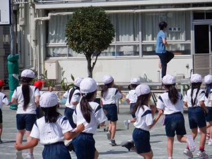 中休み、校庭に出ると1年生が練習していました。休み時間も踊りたくなるほどなんですね。