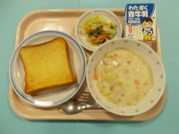 【今日の献立】シュガートーストクラムチャウダーフレンチサラダ牛乳クラムチャウダー...