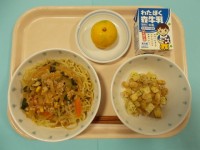 【今日の献立】みそラーメン青海苔じゃが豆果物(熊本県産 早生みかん)牛乳不動小学...