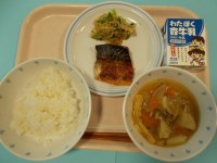 【今日の献立】ご飯鯖のピリ辛焼き野菜のおかか和え味噌けんちん汁牛乳今日はビタミン...