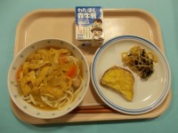 【今日の献立】鶏南蛮うどんもやしのごまじょうゆがけさつま芋の天ぷら牛乳今日の給食...