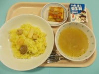 【今日の献立】パエリアトルティージャオニオンスープ牛乳2月の 世界の料理を味わう...