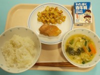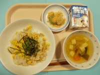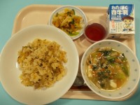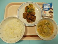 【今日の献立】ご飯さめと大豆の甘辛揚げ野菜のごまじょうゆ和え沢煮椀牛乳今月は12...