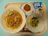 【今日の献立】五目あんかけ焼きそば野菜のピリ辛和えごまドーナッツ牛乳今日は初メニ...